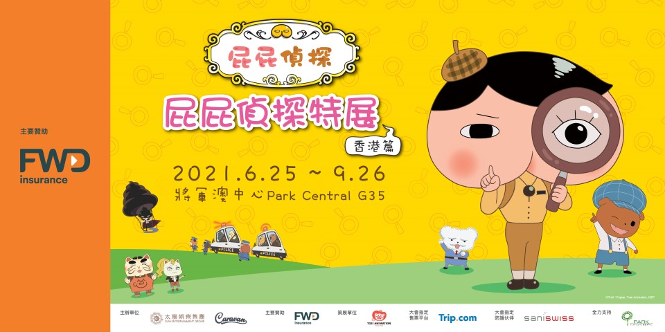 屁屁偵探將於2021年6月25日登陸香港!屁屁偵探邀請大家一同參與破案過程, 10項解迷任務專為小朋友而設,散佈7個展區!