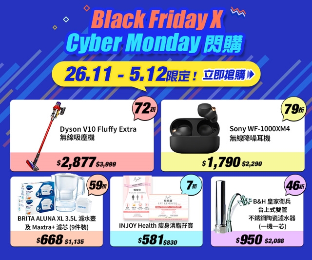 【Black Friday�W�】Dyson吸�m�C72折!Sony耳�C79折!