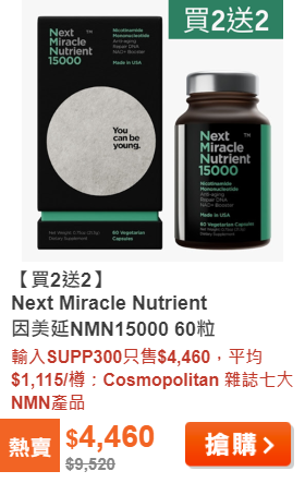 �R特�S健NMN平均$1,145/盒、14品牌NMN推介 |