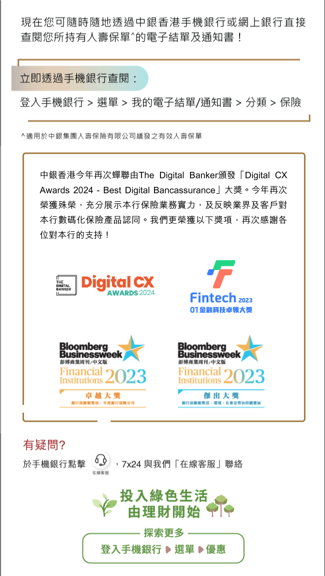 如果您不希望繼續接收本行及中銀信用卡(如適用)的電子宣傳郵件,請按此登記。此項安排無需繳付任何費用。