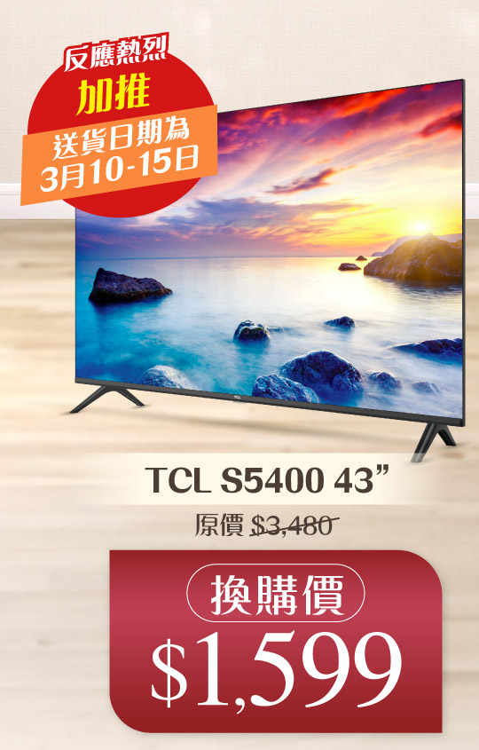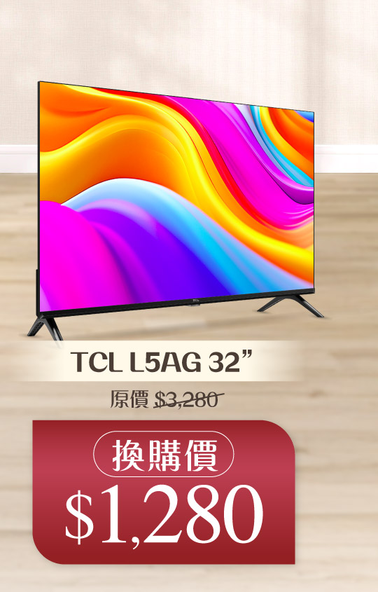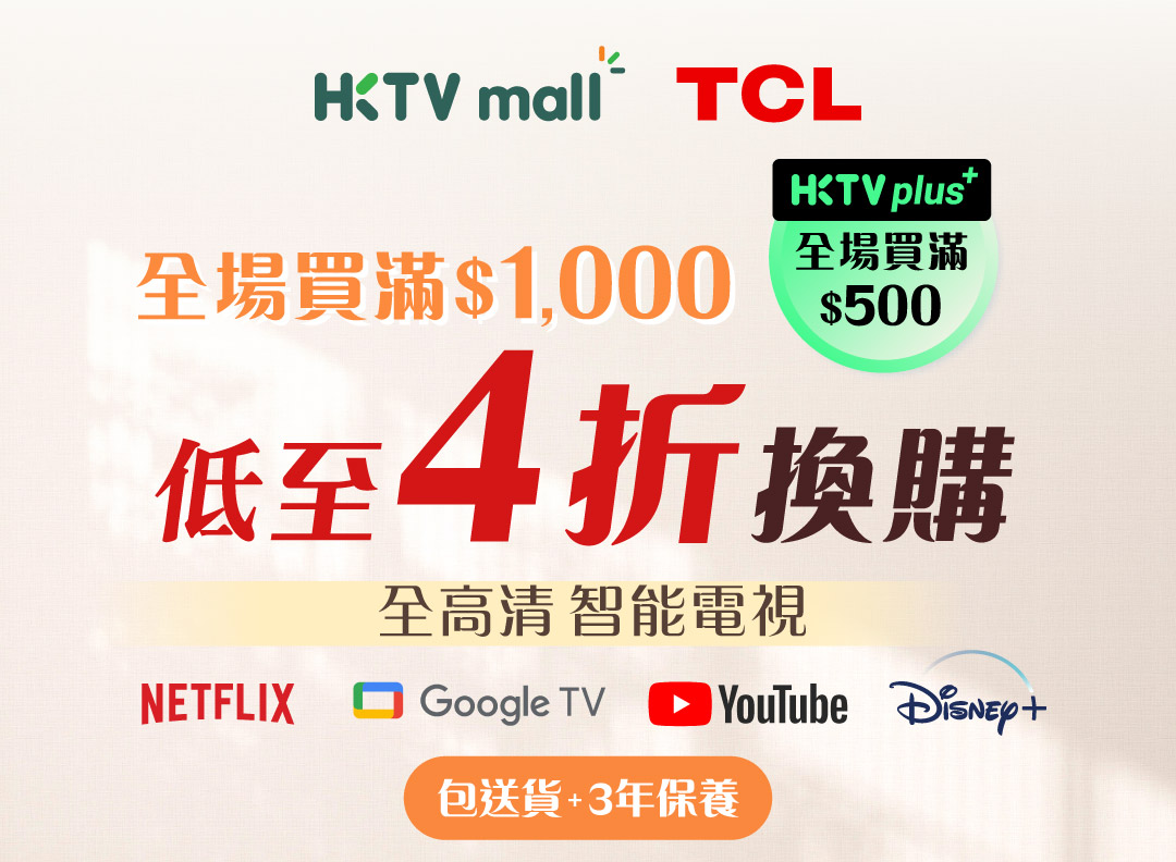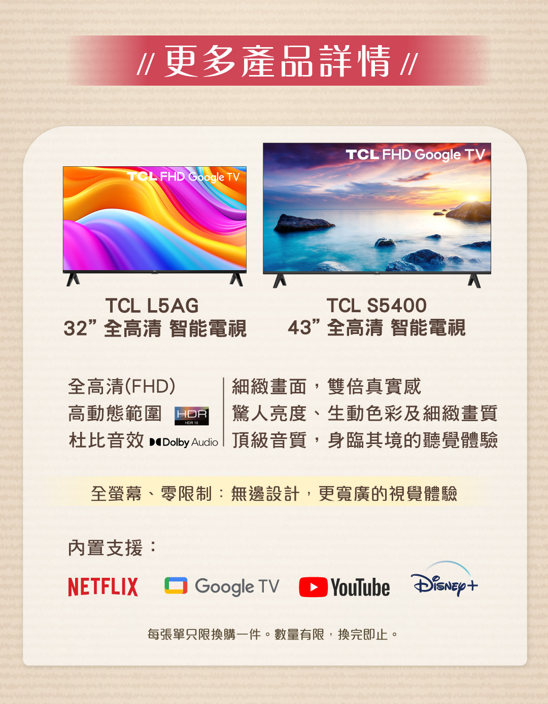 ✨最後2日✨全場買滿 $1,000 換購TCL 32" 或 43"全高清智能電視📺支援Google TV, Netflix Disney+ 即換>>