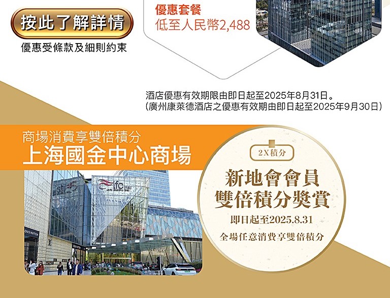 Please be assured that even if you have chosen not to receive our direct marketing materials, we shall continue to honour your membership and you will continue to enjoy the benefits conferred accordingly thereunder. You can still learn of our offers on our website or notices at the various venues under the Sun Hung Kai Properties Limited. |