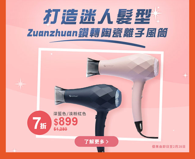 優惠詳情: 新春割引減價祭家品低至31折|Waylun Pet Care 9折優惠|ZuanZhuan陶瓷離子風筒只售$899