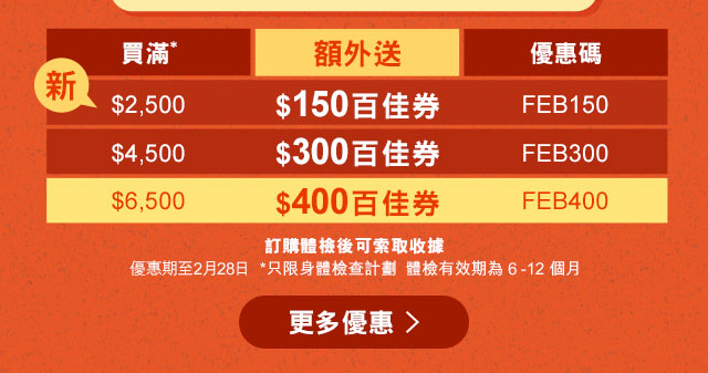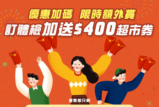 【2月加推優惠 最後召集】 訂體檢 限時每人加派$400超市券!