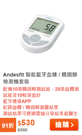 自我檢測推介:Andesfit智能血糖機$530|護心推介:培力心全一通$448.8