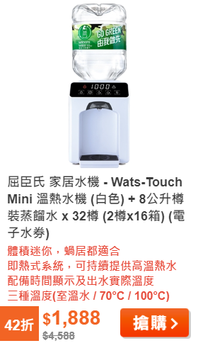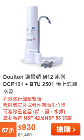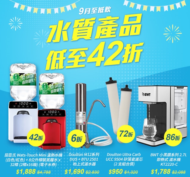 屈臣氏Wats-Touch Mini��崴��C42折$1,888|Doulton M12系列�V水器$930起