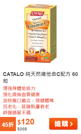 心血管:培力心全一通8折$422.4|免疫力:CATALO�天然�S他命C配方45折$120