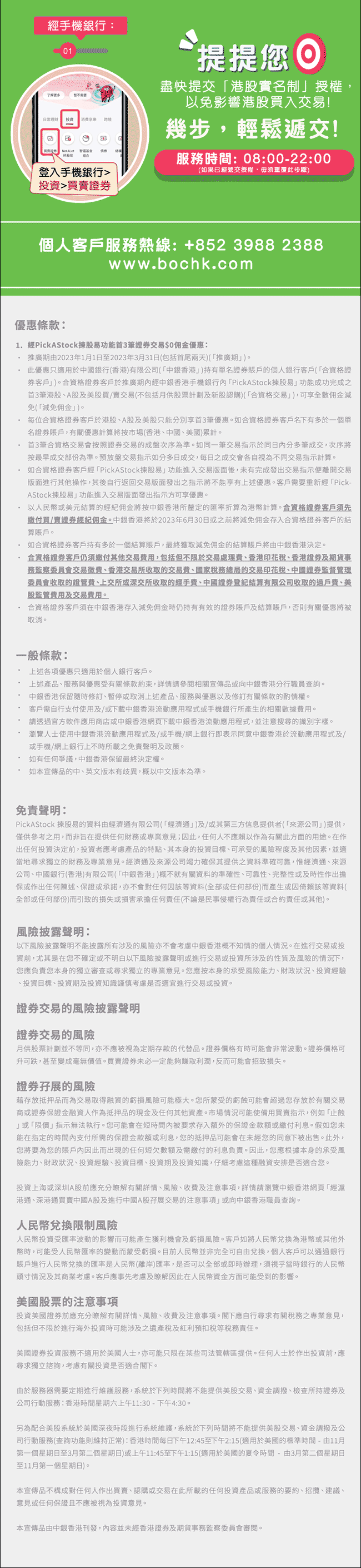 If you do not wish to receive future promotional emails from BOCHK and BOC Credit Card (if applicable), please click here. No fee will be charged for this arrangement.