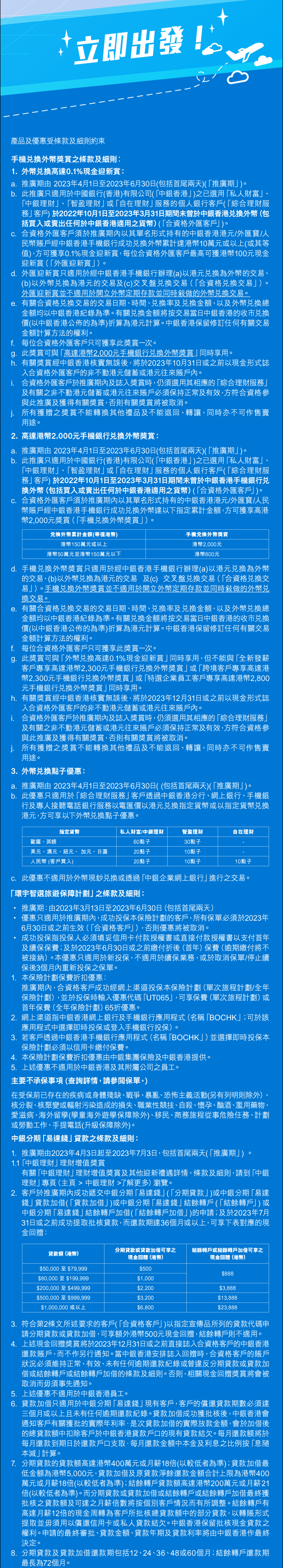 如果您不希望繼續接收本行及中銀信用卡(如適用)的電子宣傳郵件,請按此登記。此項安排無需繳付任何費用。 如果您不希望继续接收本行及中银信用卡(如适用)的电子宣传邮件,请按此登记。此项安排无需缴付任何费用。 If you do not wish to receive future promotional emails from BOCHK and BOC Credit Card (if applicable), please click here. No fee will be charged for this arrangement. |