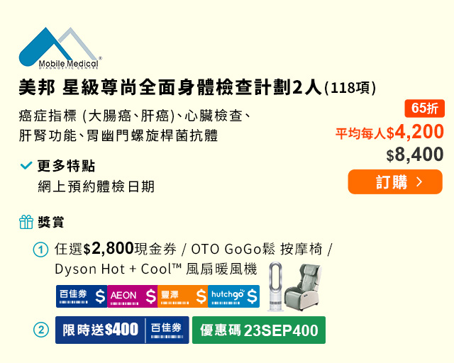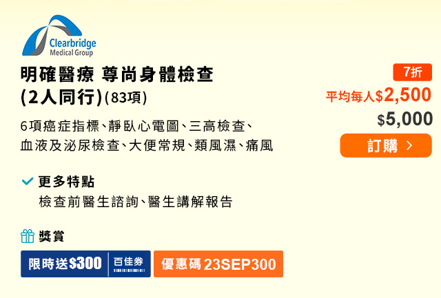 男士�z查45折 $2880起;2人同行�z查 7折$2500/人! |