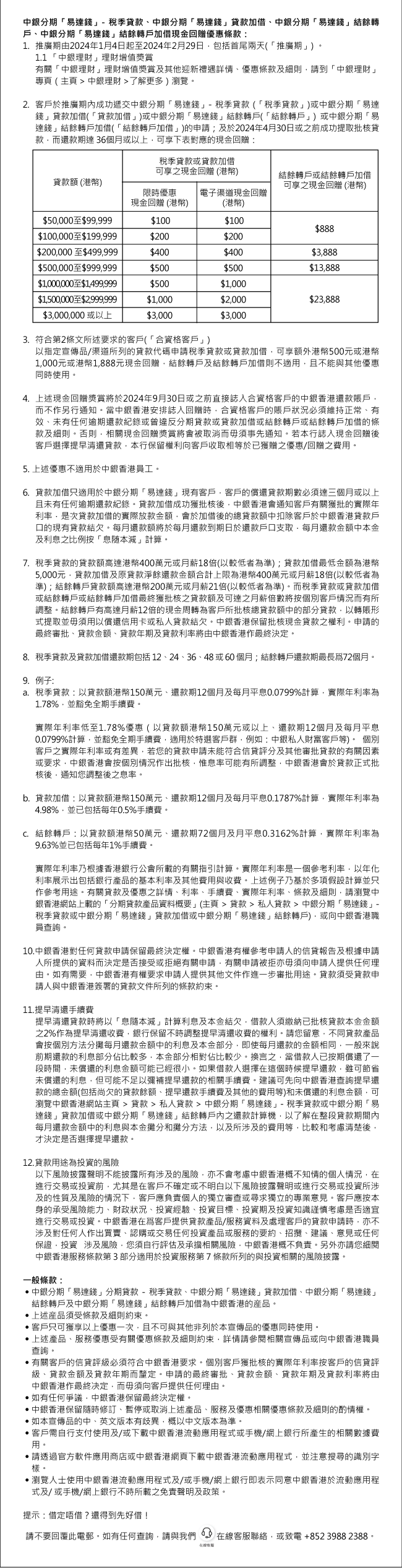 節日累積好多卡數?申請中銀分期「易達錢」結餘轉戶幫您卡數貸款一筆清,仲有高達HK$23,888元現金回贈!