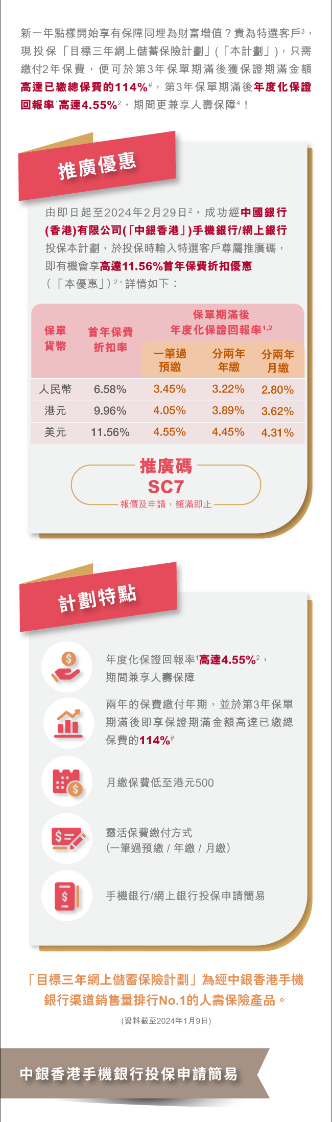 新一年點樣開始享有保障同埋為財富增值?特選客戶可享第3年保單期滿後年度化保證回報率高達4.55%的儲蓄保險,同時兼享人壽保障!
