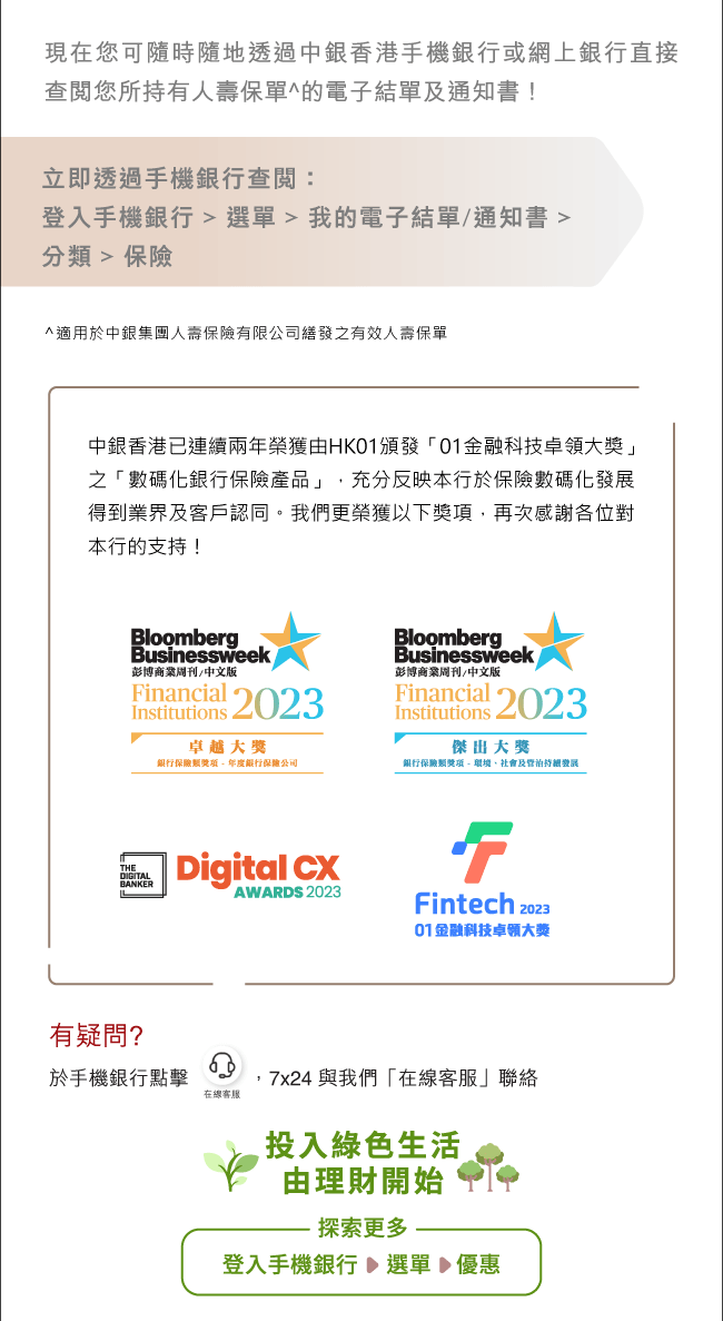 如果您不希望繼續接收本行及中銀信用卡(如適用)的電子宣傳郵件,請按此登記。此項安排無需繳付任何費用。 |