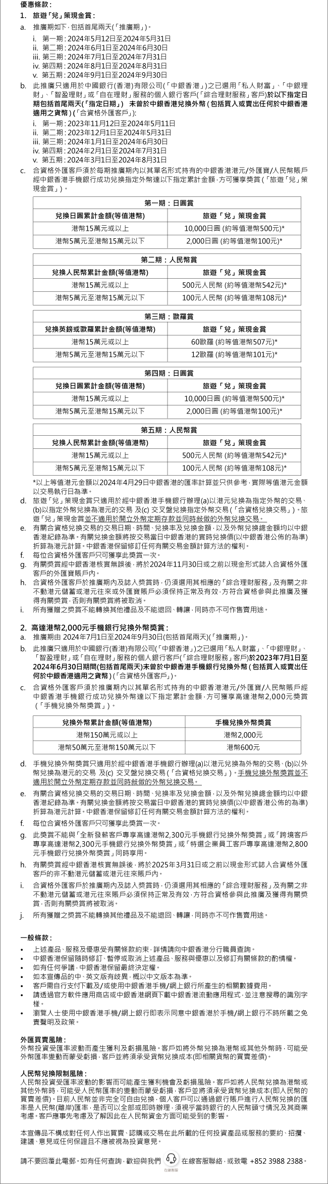 如果您不希望繼續接收本行及中銀信用卡(如適用)的電子宣傳郵件,請按此登記。此項安排無需繳付任何費用。 如果您不希望继续接收本行及中银信用卡(如适用)的电子宣传邮件,请按此登记。此项安排无需缴付任何费用。 If you do not wish to receive future promotional emails from BOCHK and BOC Credit Card (if applicable), please click here. No fee will be charged for this arrangement.