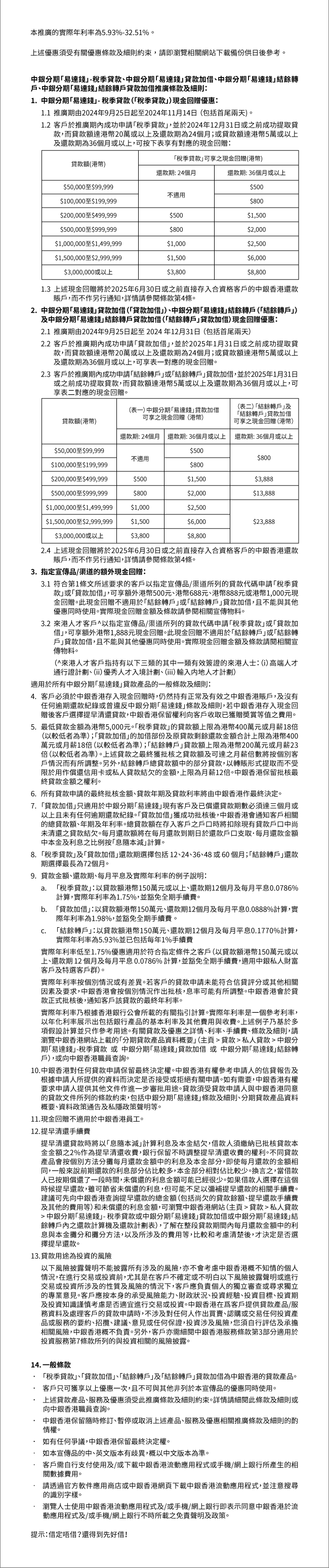【集中還款,節省利息支出】申請中銀分期「易達錢」結餘轉戶可享高達HK$23,888現金回贈!