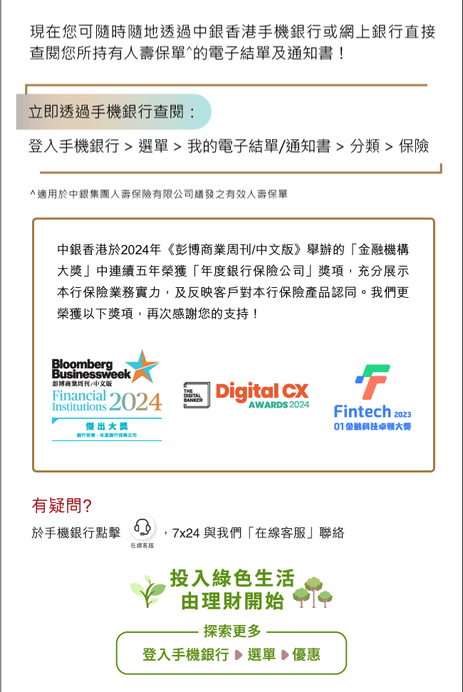 如果您不希望繼續接收本行及中銀信用卡(如適用)的電子宣傳郵件,請按此登記。此項安排無需繳付任何費用。