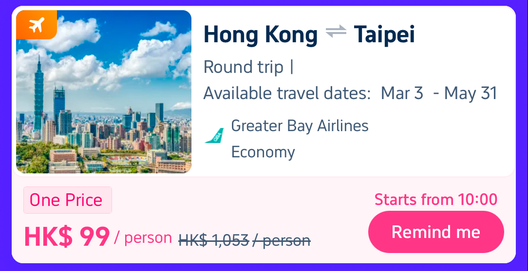 One-price Flights (incl. taxes) and Hotels from HK$99! ✈️🏨 Up To 18% Trip Coins Rebate💸 More Exciting Travel Deals Awaits! Grab now👉🏻