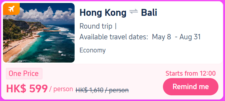 Fly to Bali for just HK$599☀️