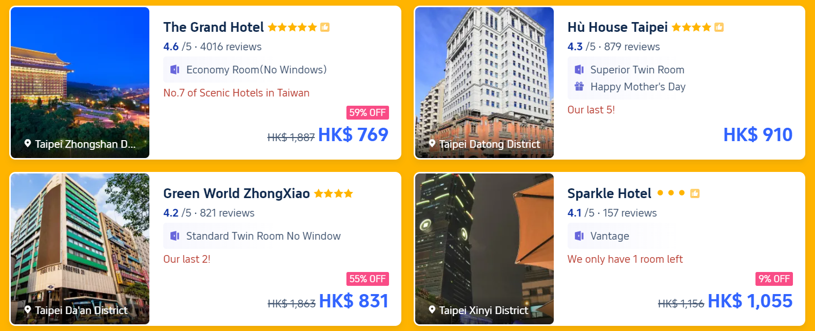 Mother's Day Offer💝Book Taiwan Flight + Hotel earn HK$117 rebate😱 Check out more Taiwan offers👉