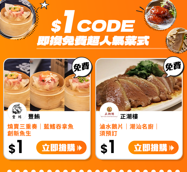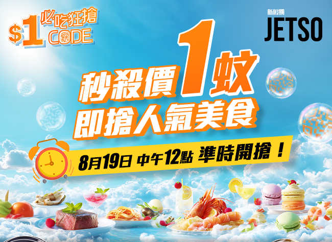 【$1必吃狂搶CODE】|一蚊換免費人氣美食即搶🤩免費日式吞拿魚燒賣🏠半價酒店自助晚餐 | 新假期JETSO震撼呈獻