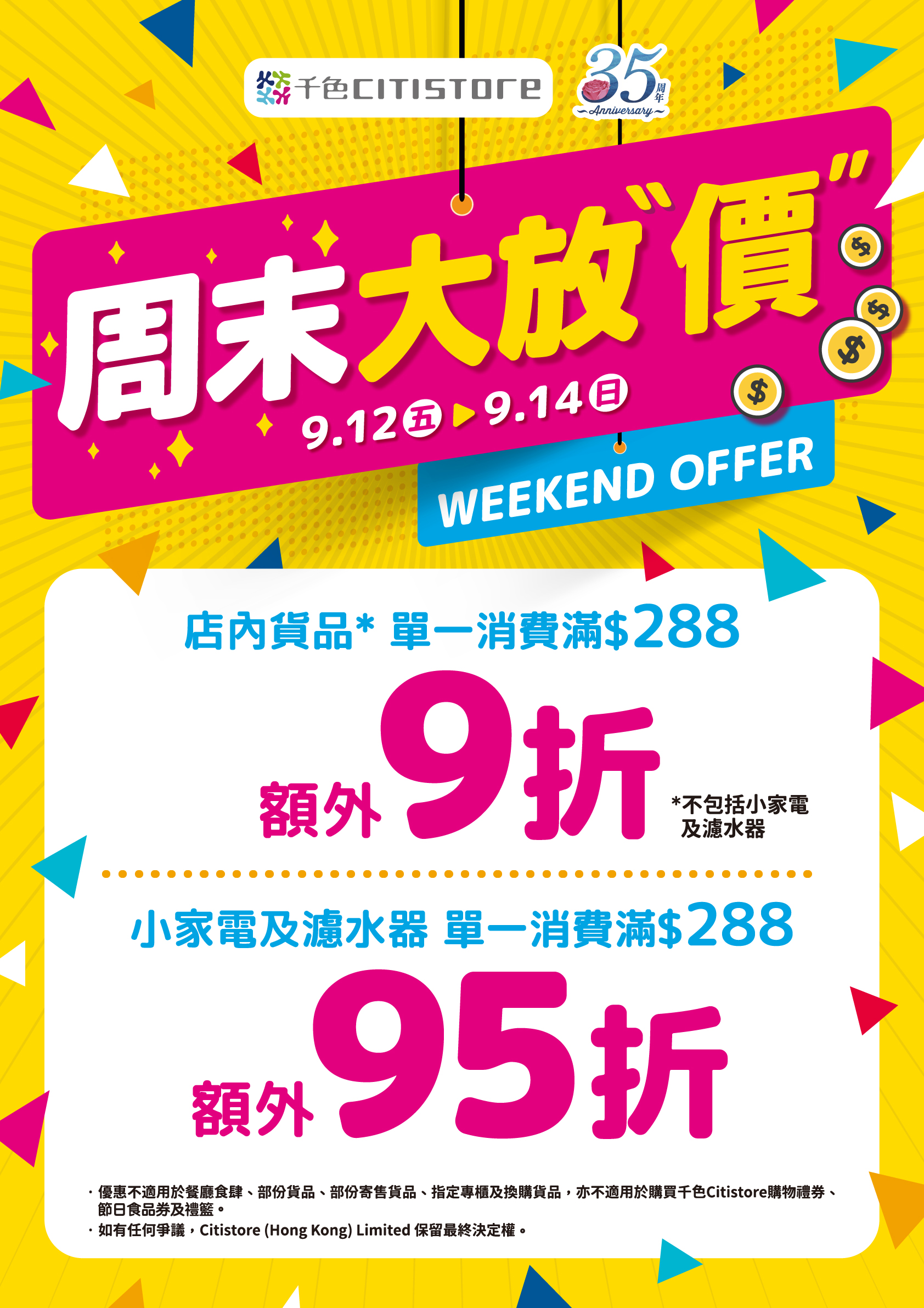 快閃優惠 購買指定貨品滿額獲享9折;小家電及濾水器95折