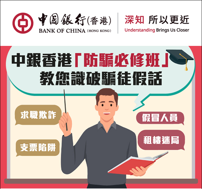 中銀香港「防騙必修班」 教您識破騙徒假話 BOCHK "Anti-Fraud Class" Teaches You How To See Through A Scammer's Lies
