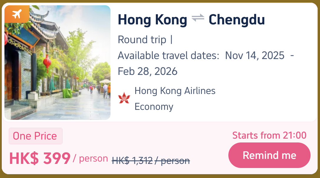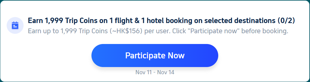 Also HK$399 Chengdu flight🎉HK$1 for 5G eSIM / train ticket🤩1,999 Trip coins + 15% rebate awaiting