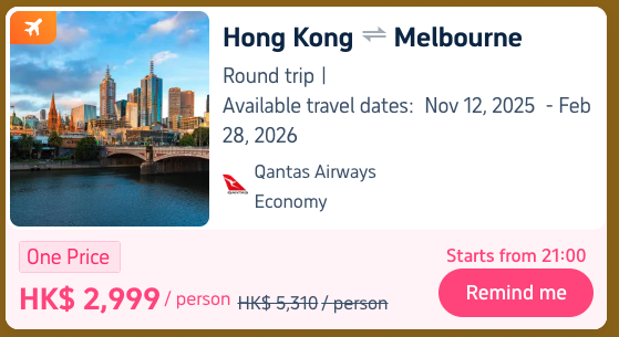【11.11 Mega】Grab HK$2,999 Flight to Melbourne🇦🇺