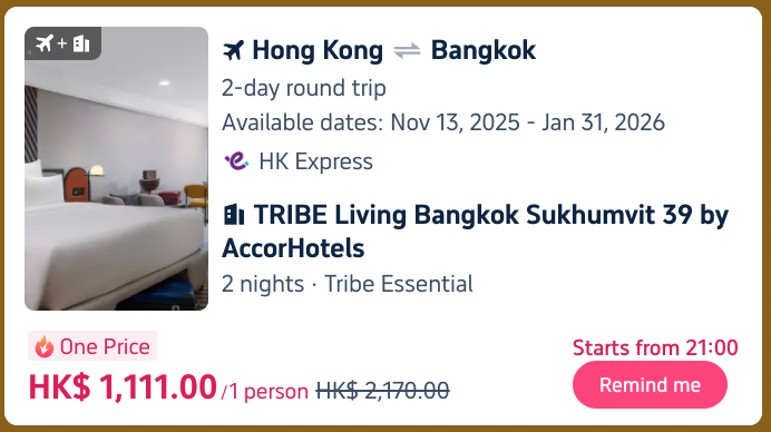 Also HK$1,111 Bangkok flight+hotel😱3-hour limited 15% rebate💰Thailand 5-star hotels from 50% off✨