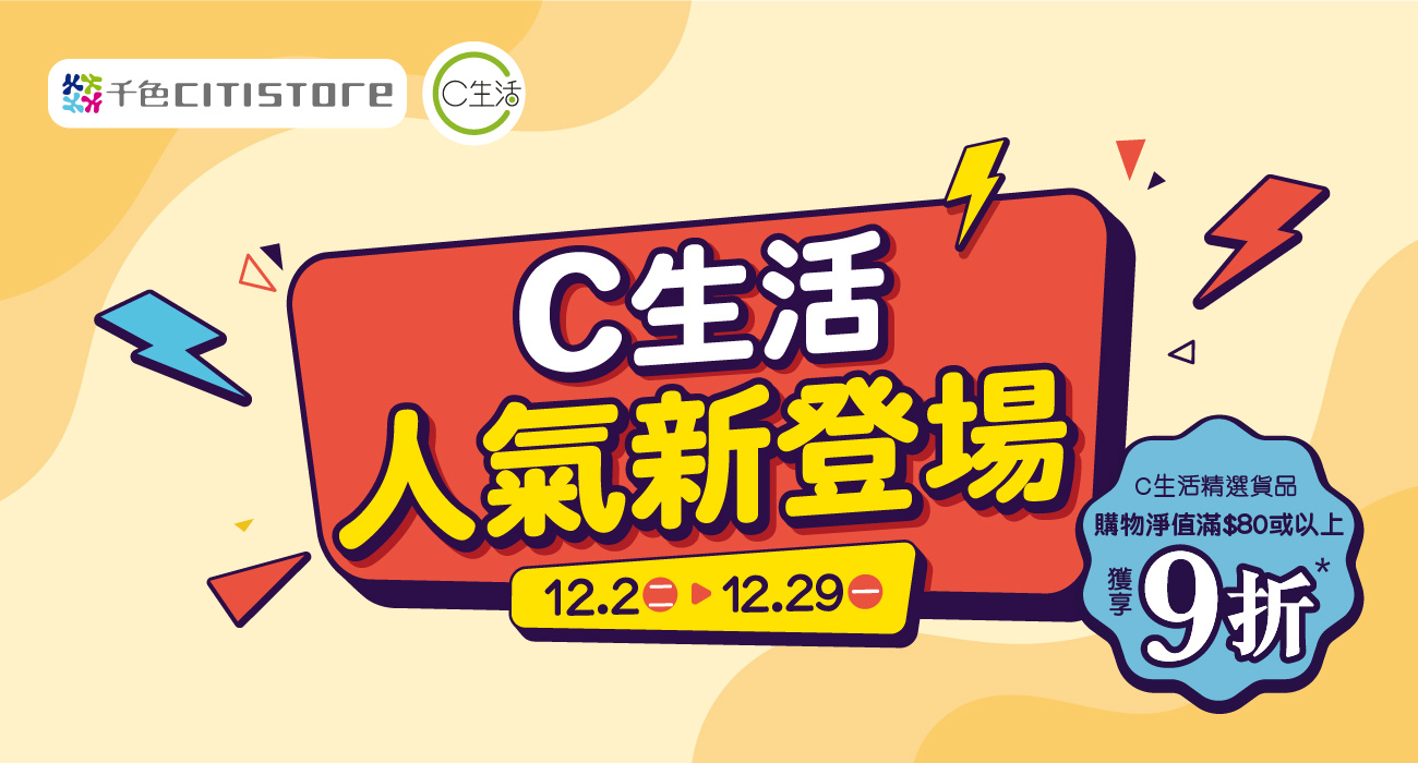 C生活限時優惠:購物淨值滿$80或以上獲享9折優惠!