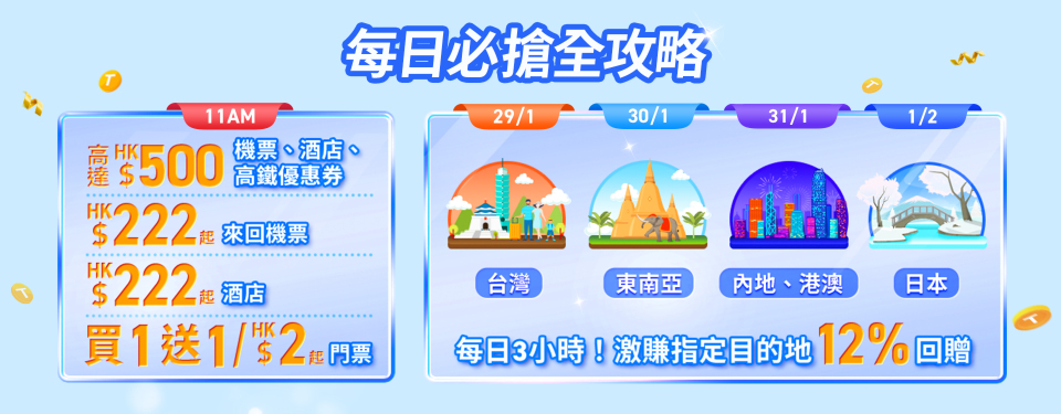 倒數3日⏳機票、酒店 HK$222 起😱大派總值 HK$9,600 優惠碼!仲有每月一度會員日,即睇👇