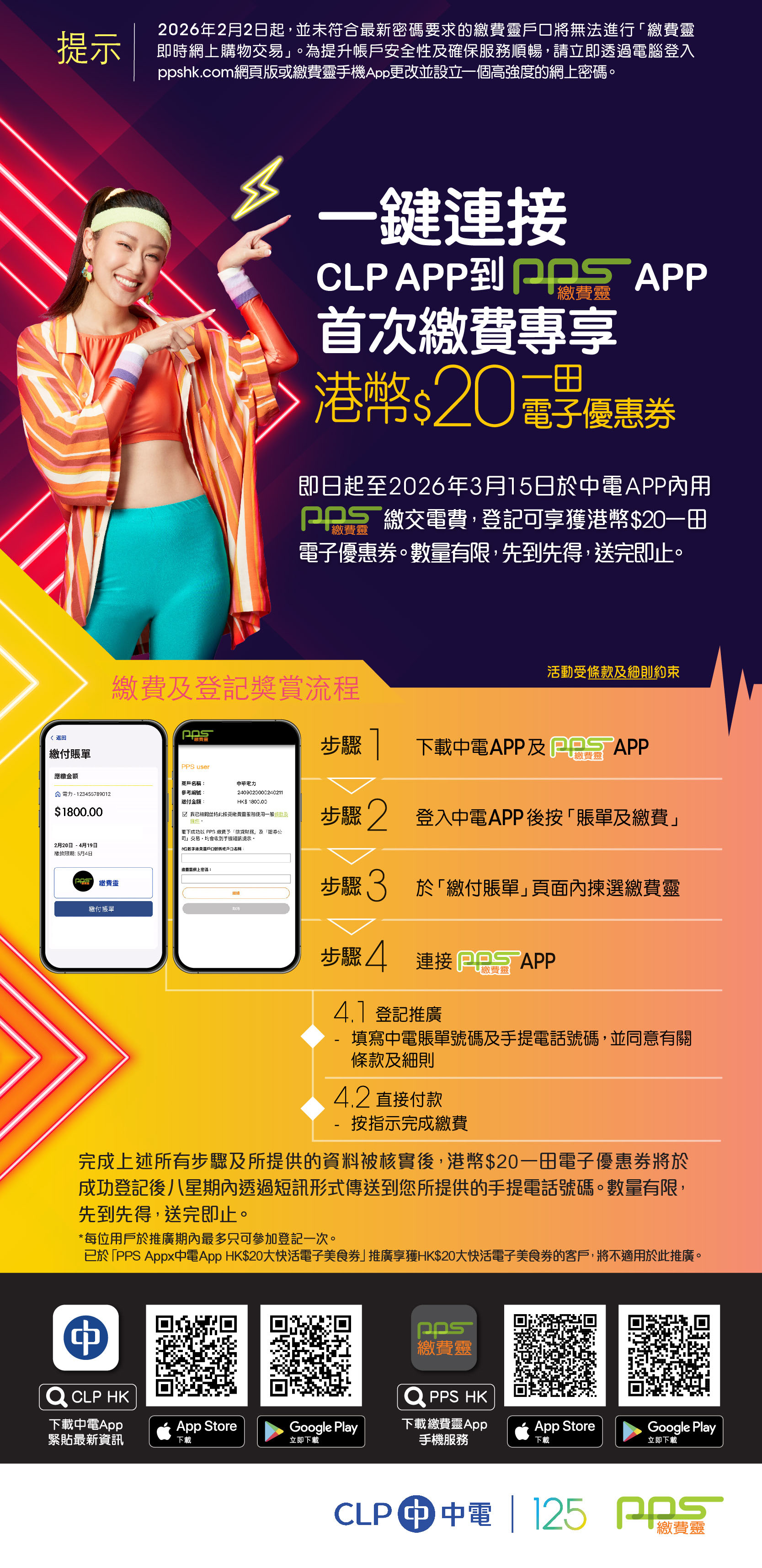 有關繳費靈付款通知之保安提示: • 及時核實交易詳情 - 當您收到付款通知後請儘快查閱並核實有關交易詳情,確保交易金額、日期、時間、參考編號等信無誤。 • 注意未授權交易 - 如發現任何未經授權或未能確認之交易,請立即聯絡上述繳費靈客戶服務熱線。 • 慎防釣魚詐騙訊息 - 請留意,繳費靈並不會透過付款通知電郵或短訊要求閣下提供任何個人資料,如有懷疑,請立即聯絡上述繳費靈客戶服務熱線。 備註 請勿回覆此電郵,由於您已同意易辦事(香港)有限公司 EPS Company (Hong Kong) Limited 向您發送有關繳費靈的產品或服務的推廣資料,因此我們向您發出本電郵。如果您不想收取繳費靈的宣傳郵件,請登入繳費靈網站,選擇「戶口設定」>「更改一般設定」>「使用個人資料作直接促銷」>「您的選擇」>「不同意」。你亦可將你的要求電郵至 pps_unsubscribe@eps.com.hk ,但請勿於電郵內透露你的PPS戶口號碼、密碼或其他重要個人資料。當我們收到您的要求,我們將會從宣傳電郵名單中刪除您的電郵地址。 如有查詢或要求其他協助,請致電2311 9876聯絡我們。 |