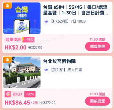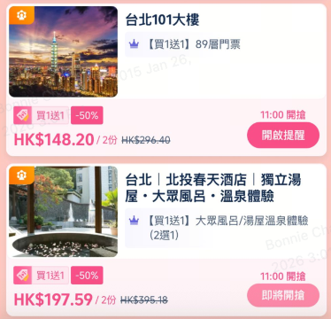 11AM 正式開搶👉🏻 三小時限定 12% 回贈💰狂搶 HK$222 來回台北、高雄機票 / 一口價酒店🌟入嚟望定先🫵🏻